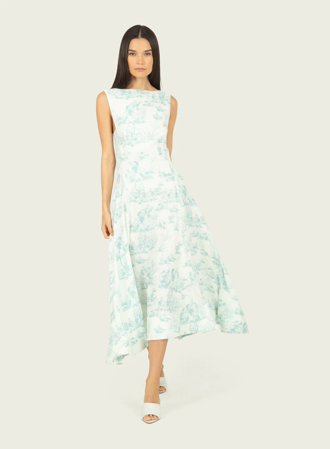 Madison Dress - Watercolor Blue Floral - Cotton Silk
