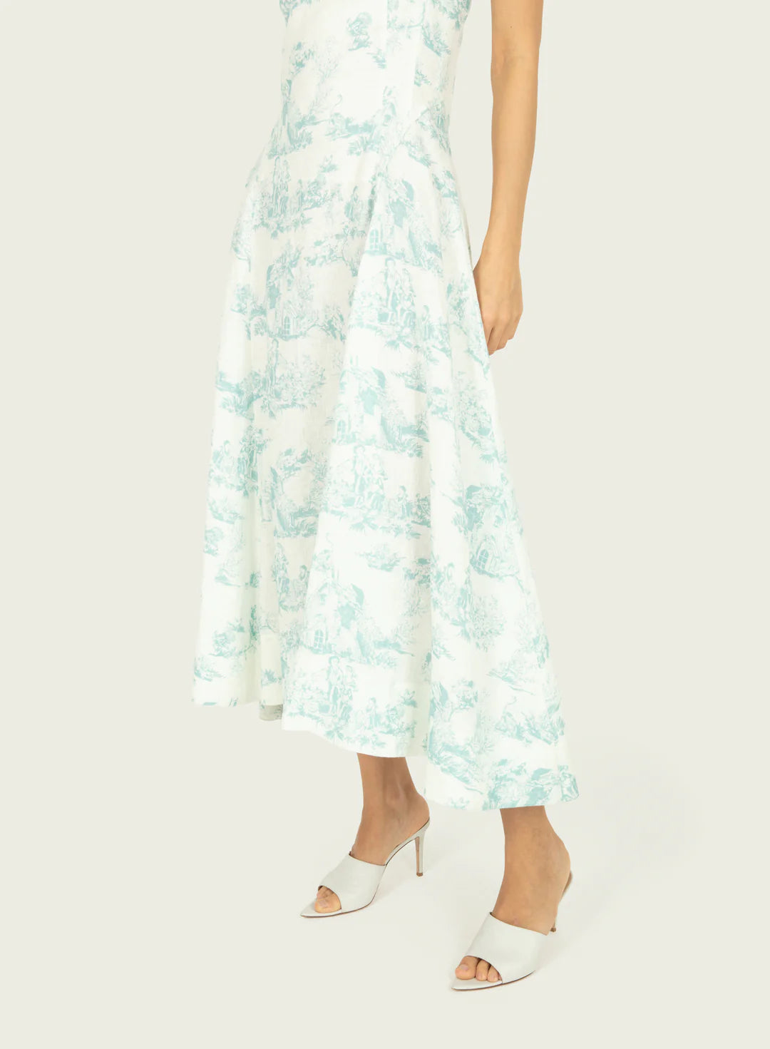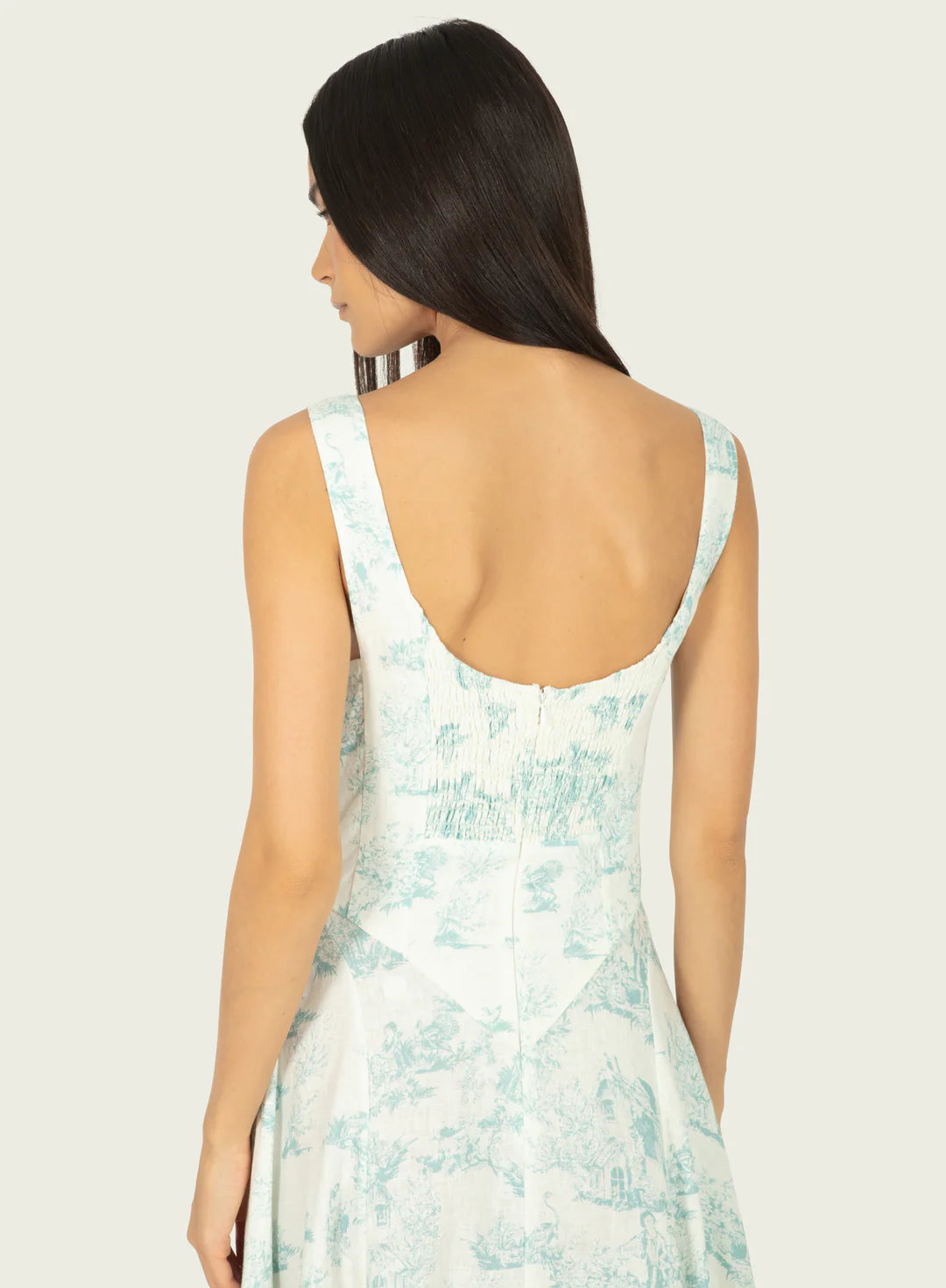 Made from a cotton linen, this printed maxi dress features a fitted bodice that extends into a full skirt at the hip.