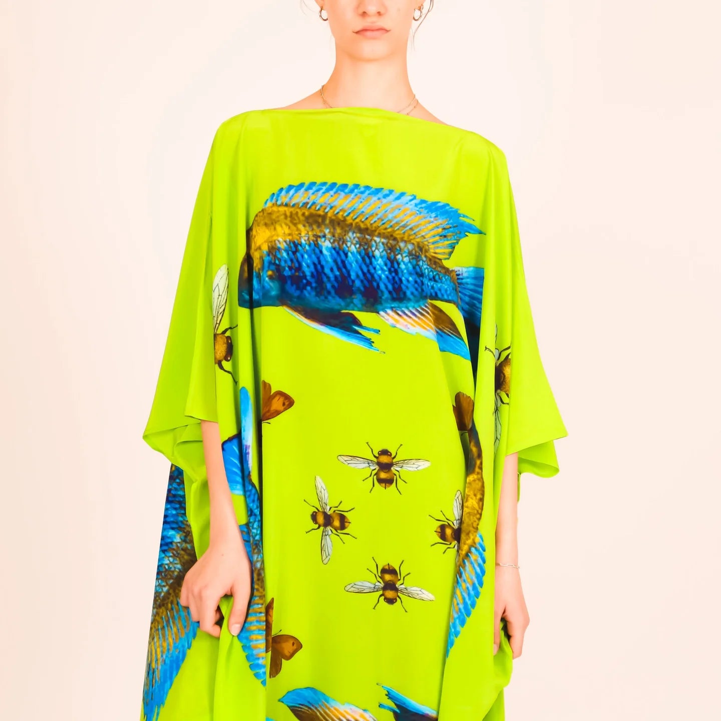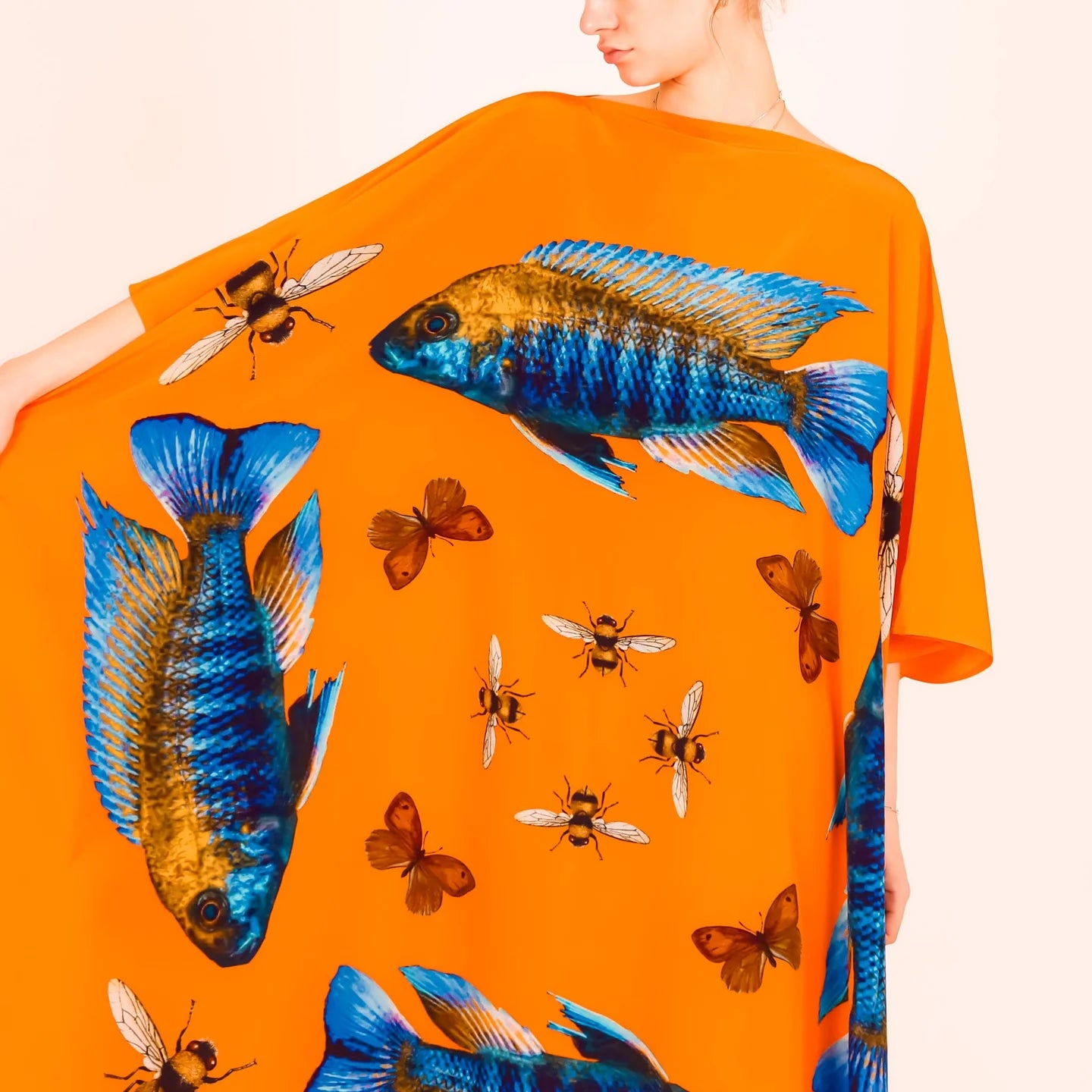 Experience the luxury and ease of silk crepe with our Butterfly Fish Tunic. The high-quality 100% silk material is perfect for traveling, as it is wrinkle-free and ready to wear whenever your adventures take you. Enjoy the softness and elegance of silk without the hassle of ironing or steaming.