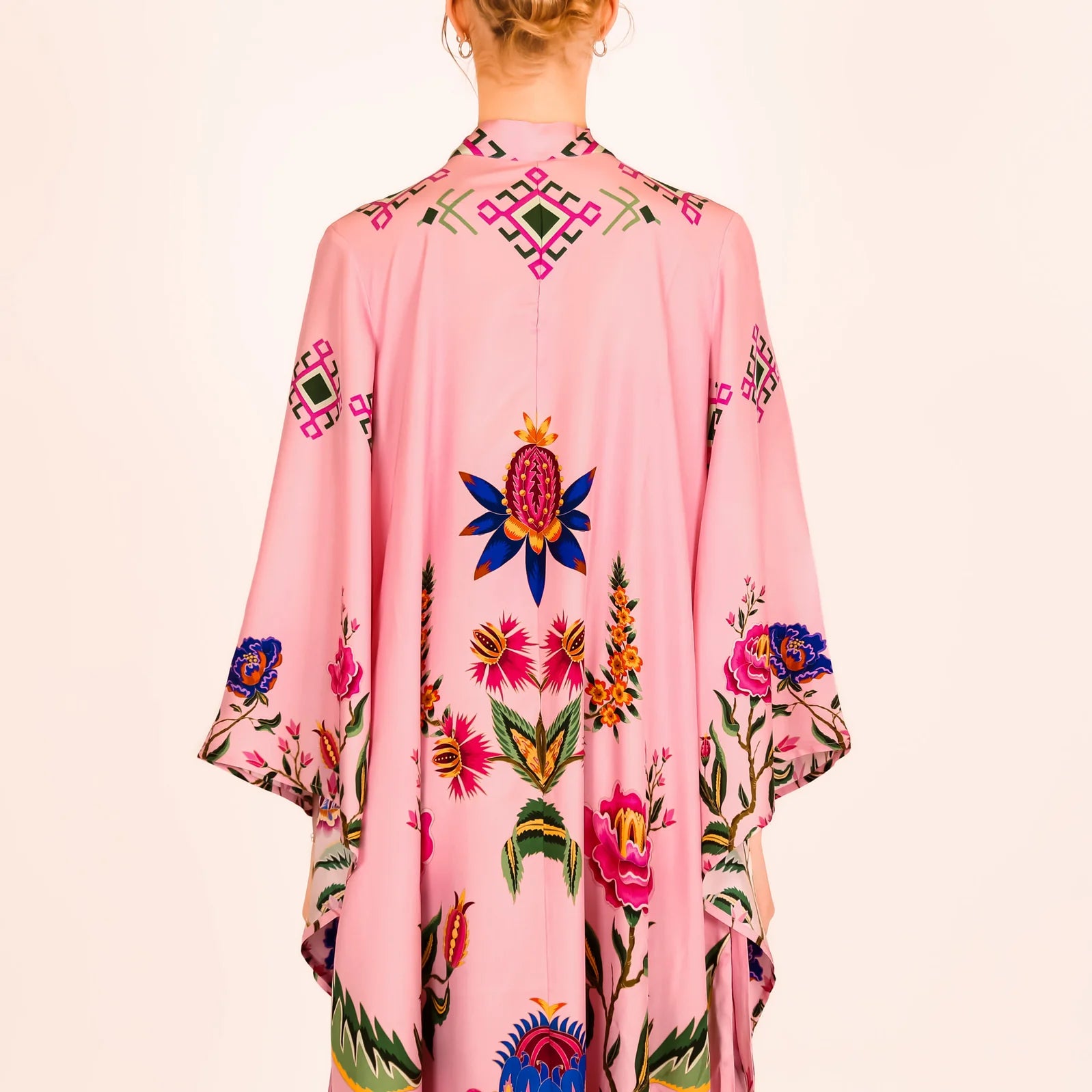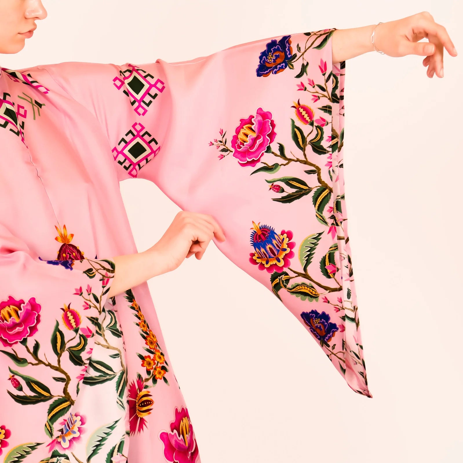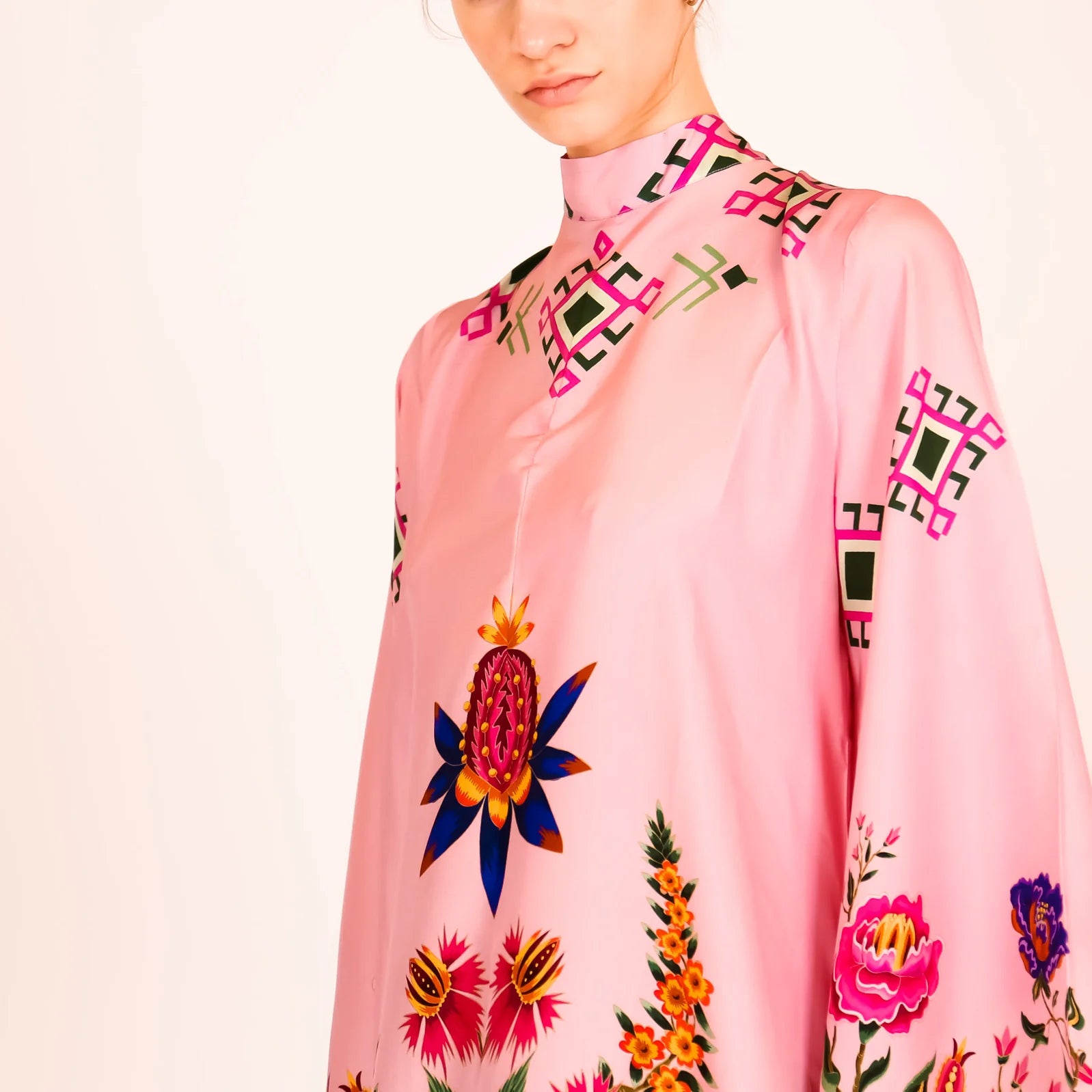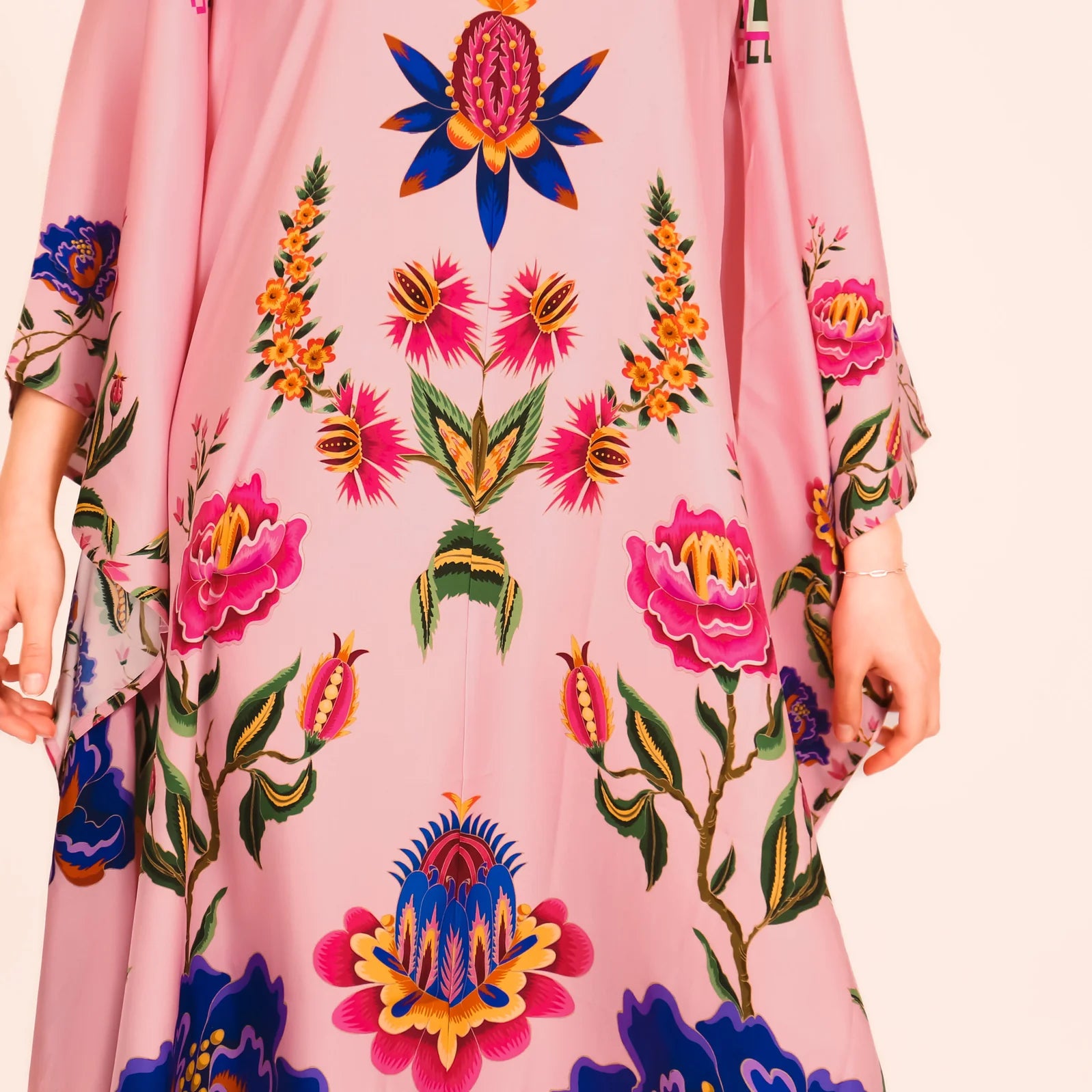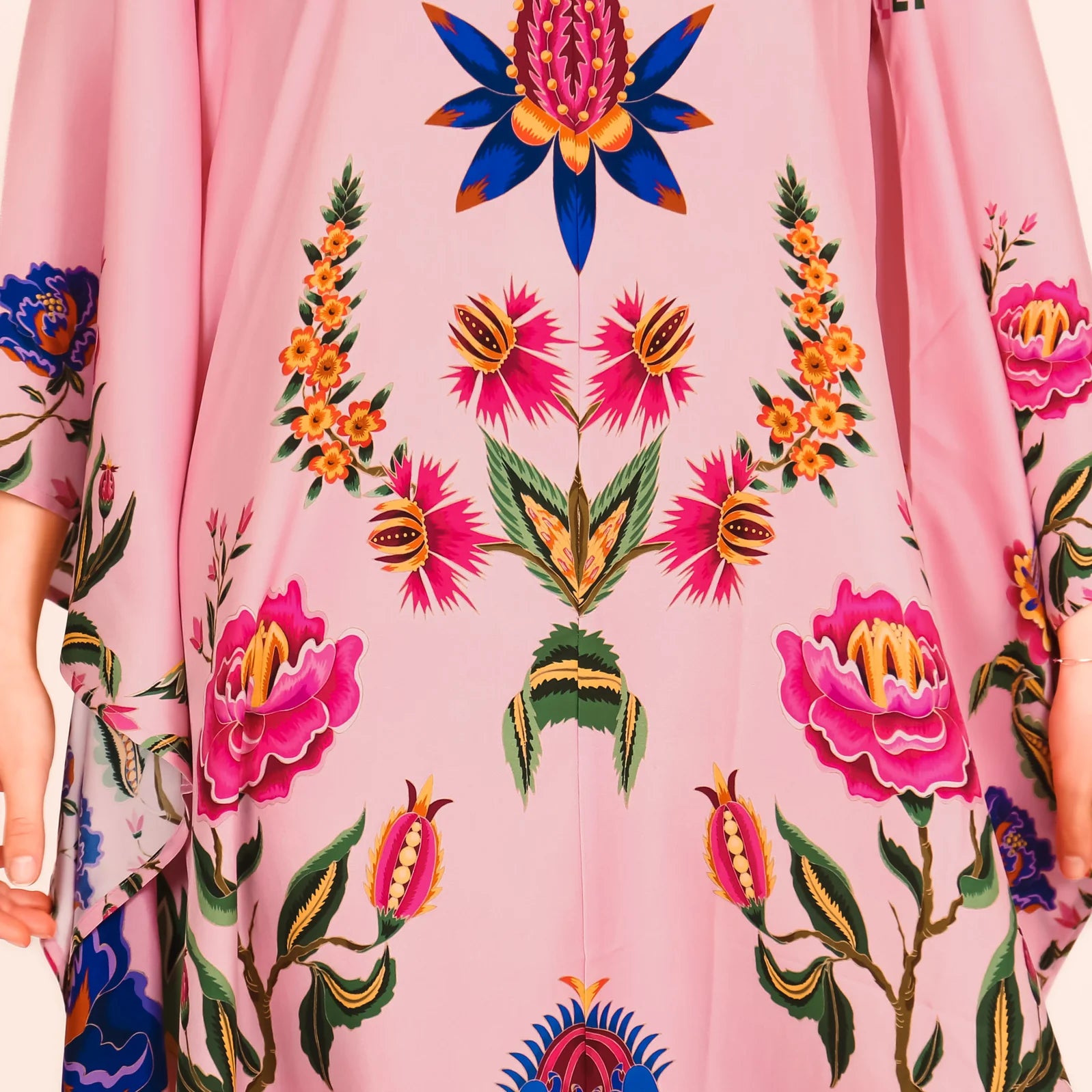 The "Ethno Floral Princess Dress" features an enchanting ethno-floral pattern, vibrant colors, and intricate details for a radiant and elegant look. The flowing silhouette accentuates your curves with grace and lightness, while the pure silk fabric adds a luxurious touch. Crafted with meticulous attention to detail, this Simone Bruns dress exudes exquisite craftsmanship and sophistication, making it a timeless classic.