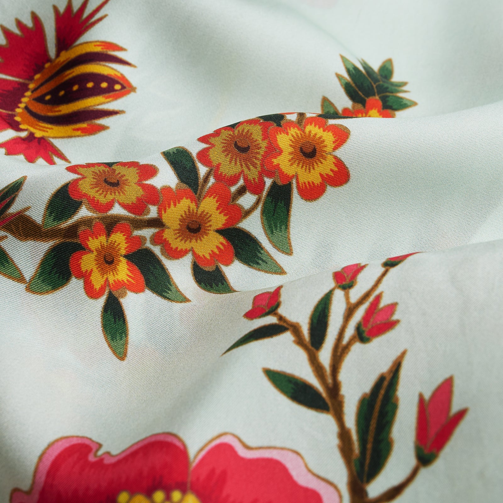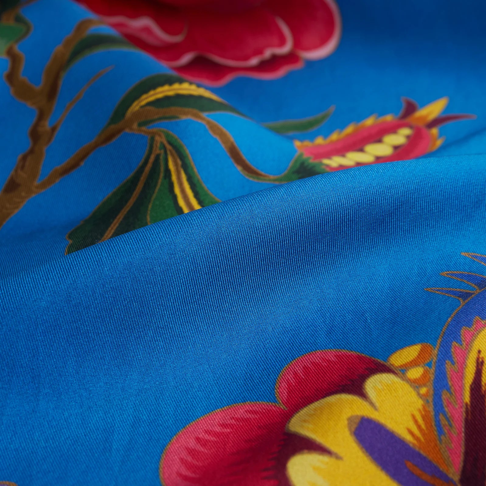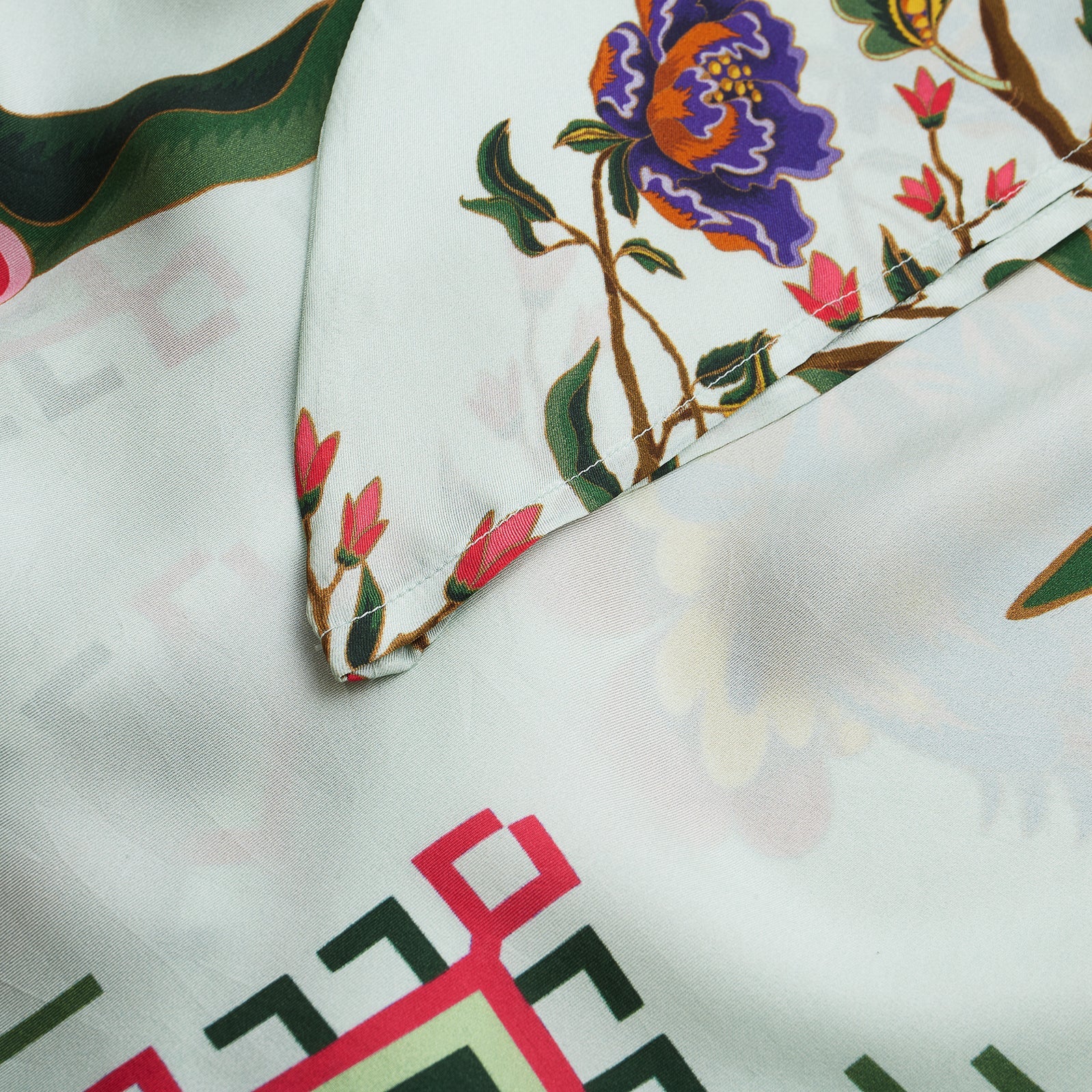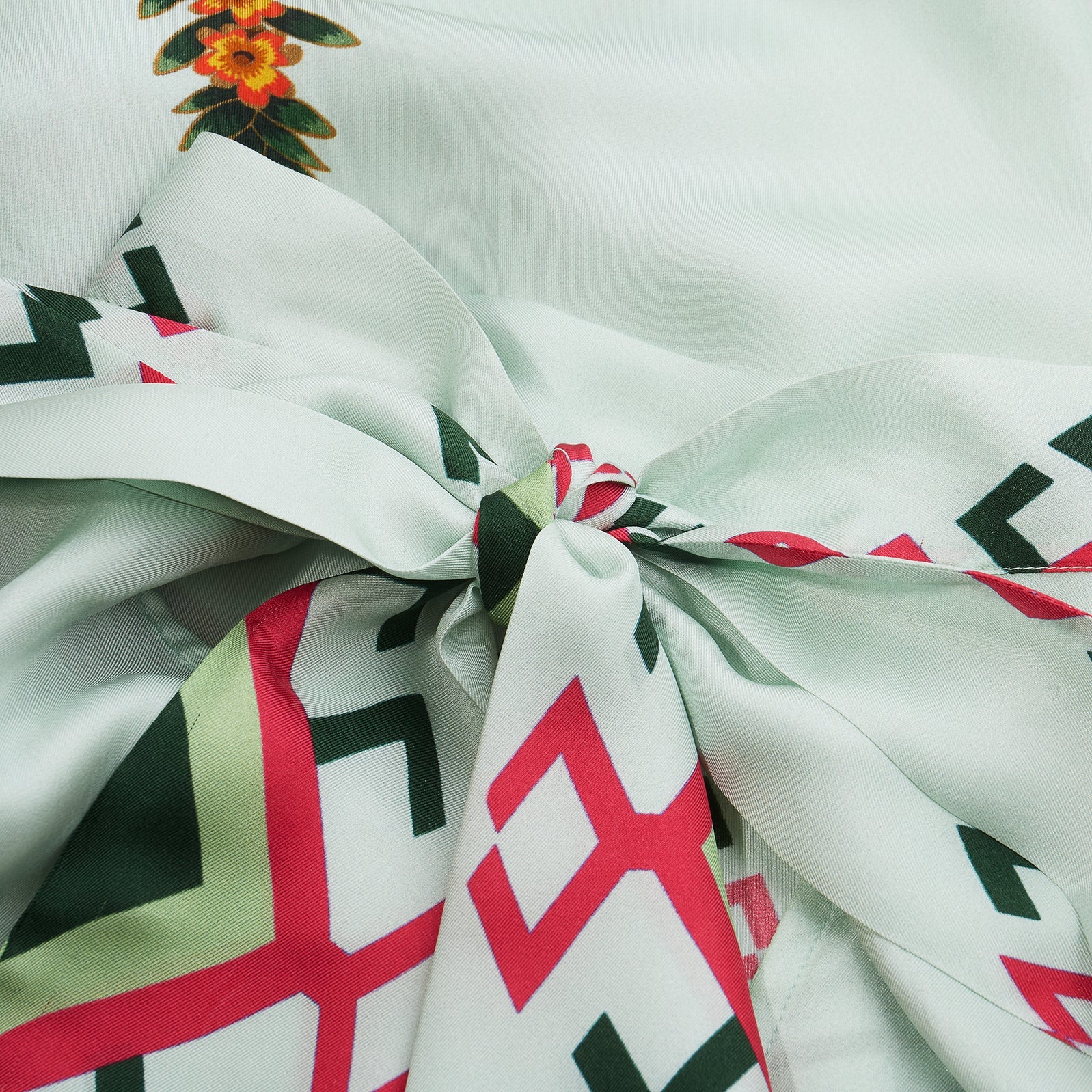 The "Ethno Floral Princess Dress" features an enchanting ethno-floral pattern, vibrant colors, and intricate details for a radiant and elegant look. The flowing silhouette accentuates your curves with grace and lightness, while the pure silk fabric adds a luxurious touch. Crafted with meticulous attention to detail, this Simone Bruns dress exudes exquisite craftsmanship and sophistication, making it a timeless classic.