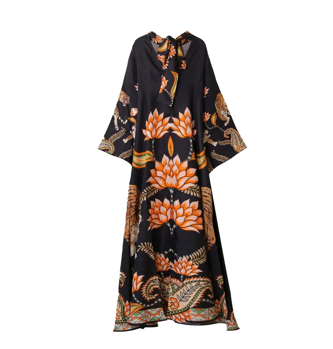 Immerse yourself in the world of elegance and charm with the “Tiger Princess Dress” by Simone Bruns. Made from the finest 100% silk, this dress combines artistic design with luxurious quality.