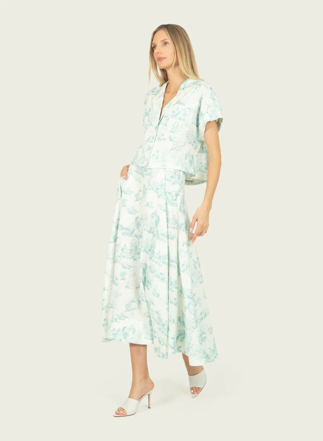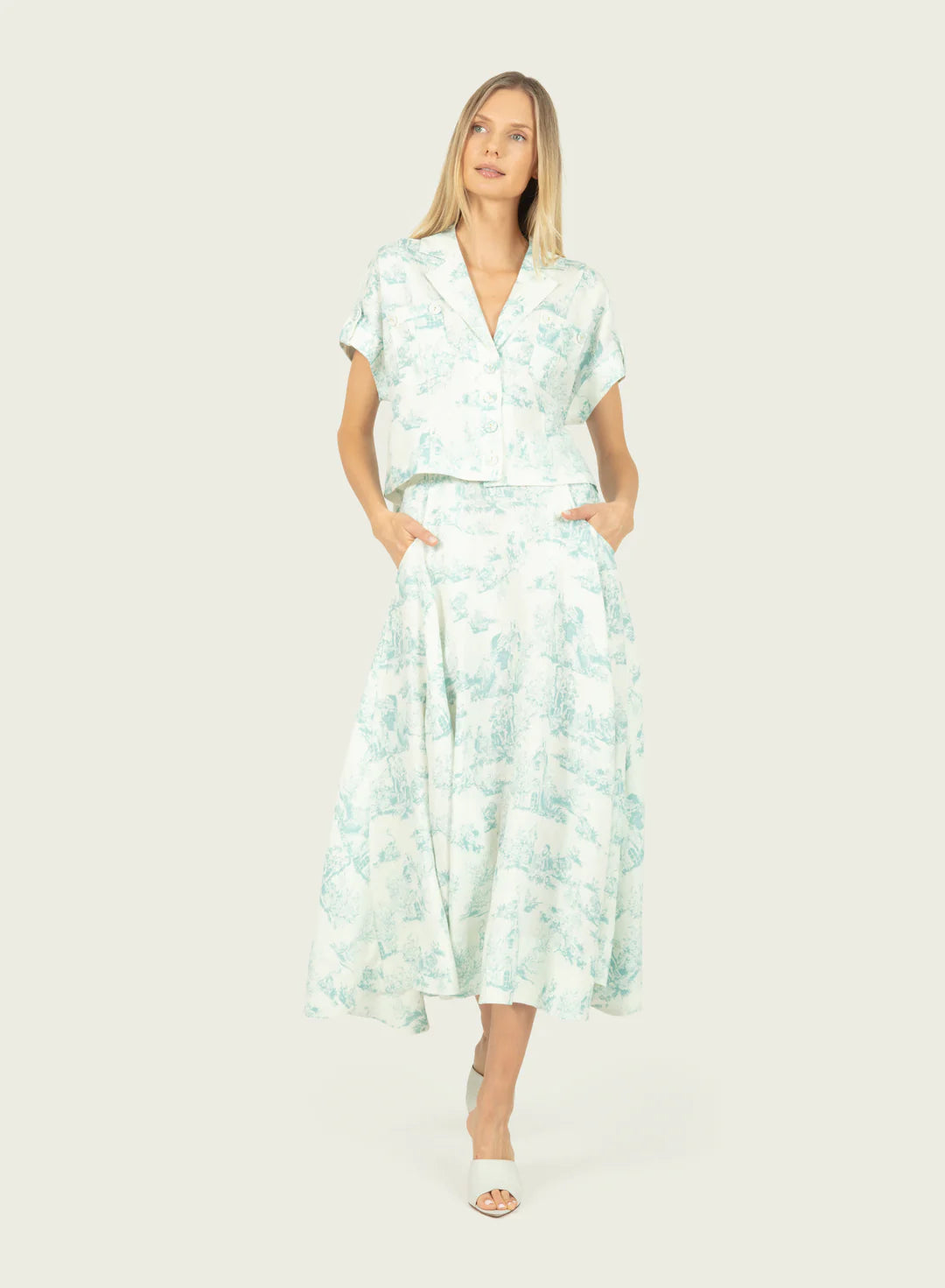 Made from a cotton linen, this printed cropped top features a boxy silhouette, v-neckline and utilitarian pocket and sleeve tab details.